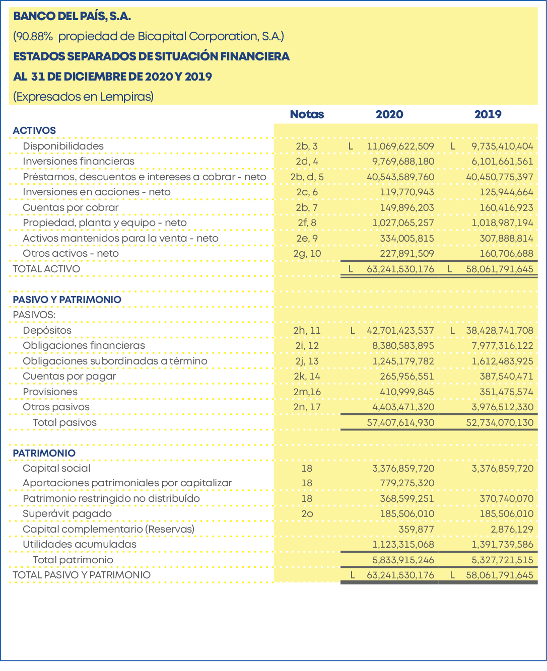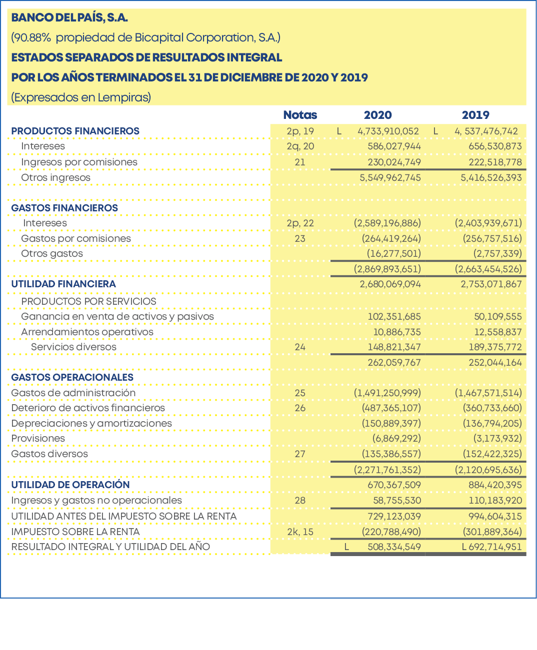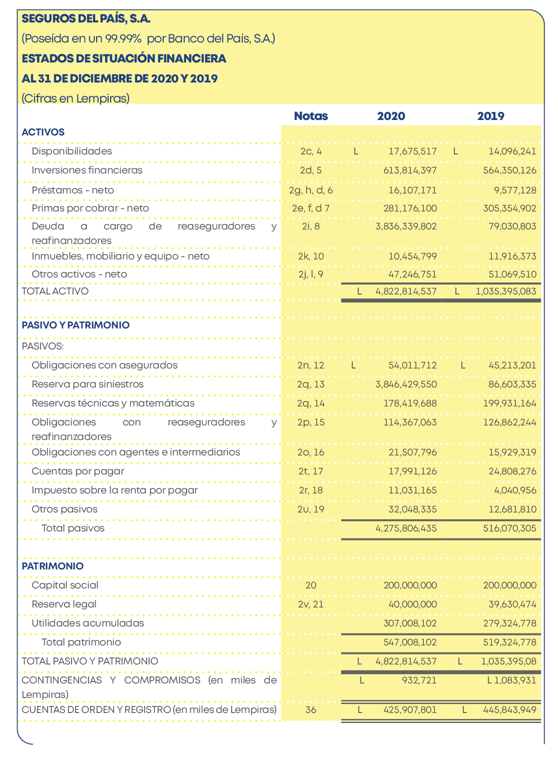 Finalmente, la solidez de nuestro balance nos permite tener una excelente posición para afrontar los retos que traerá el 2021. Reiteramos nuestro compromiso de continuar gestionando a Banpaís con la misma prudencia que lo hemos hecho hasta ahora, para procurar siempre incrementar el valor de su participación en nuestra institución.